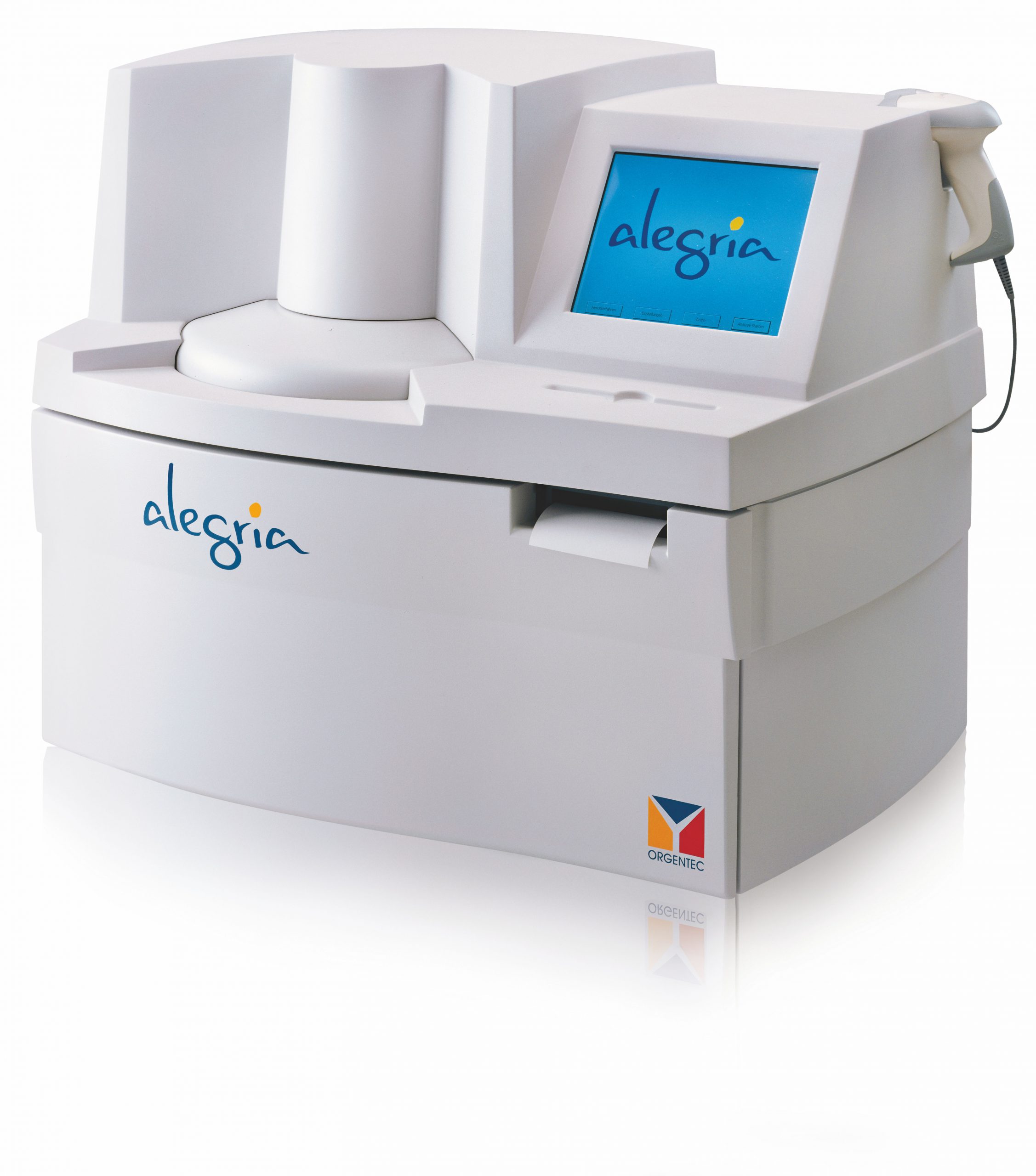 The Alegria® analyzer is an automatic analytical system whose methodology is based on the monotest format coupled with the exclusive SMC® (Sensotronic Memorized Calibration) technology, developed by Orgentec, in which all test data, product information, batch, calibration curve, limit values, among others, are transmitted to the system through bar codes.